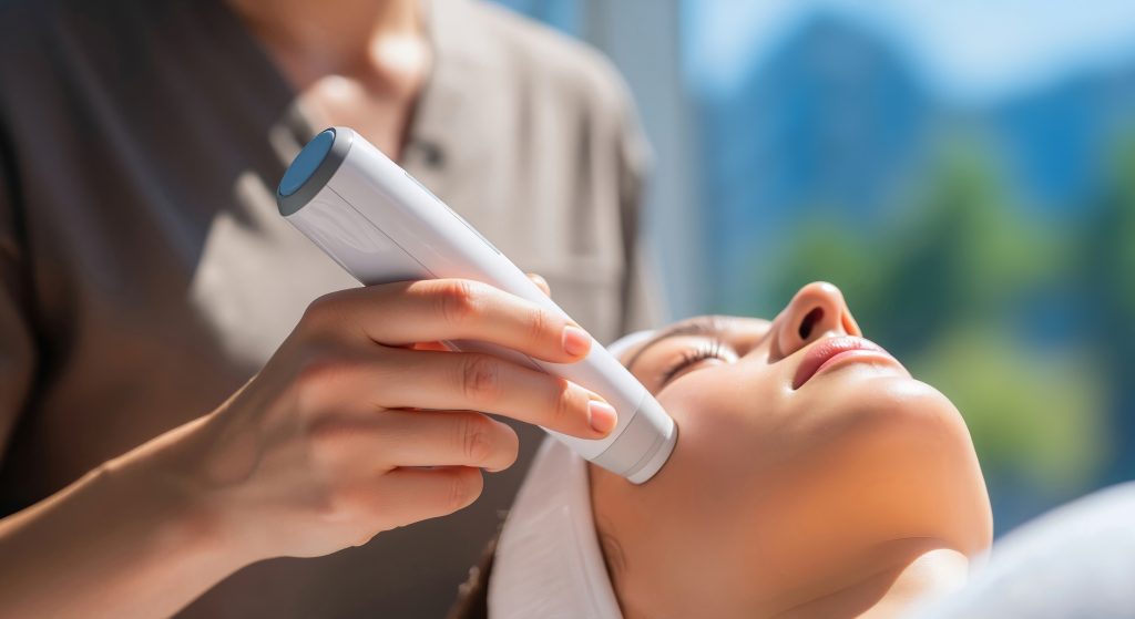 Bei der Behandlung arbeiten wir mit einem speziellen Needling-Gerät, das winzige Kanälchen in die oberste Hautschicht setzt. So können hochwertige Wirkstoffe wie Hyaluron, Vitamine oder Peptide besonders tief eindringen und ihre volle Wirkung entfalten. Die Haut wird besser durchblutet, regeneriert sich schneller und wirkt schon nach kurzer Zeit frischer und vitaler.